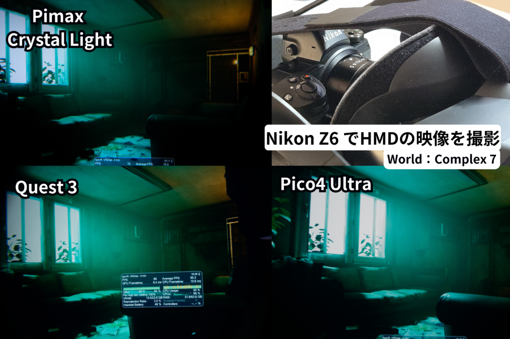 画質比較結果:Crystal Light ・ Quest3・Pico4 Ultra