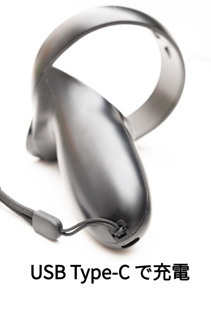 座ったままで動かないVRプレイスタイルであれば気になりませんが、フルトラで動き回るとケーブルが気になります。映像転送もこのケーブルで行うので仕方ないですが、Quest3 や Pico 4 Ultra 等で使うUSBケーブルと比べると明確に太く重いケーブルです。また、ケーブルの扱い方を工夫しないと、ケーブルの重さをHMDで支えることになるので、付け心地にも影響があります。ケーブルをどのように引いて使うかを工夫する必要があります。